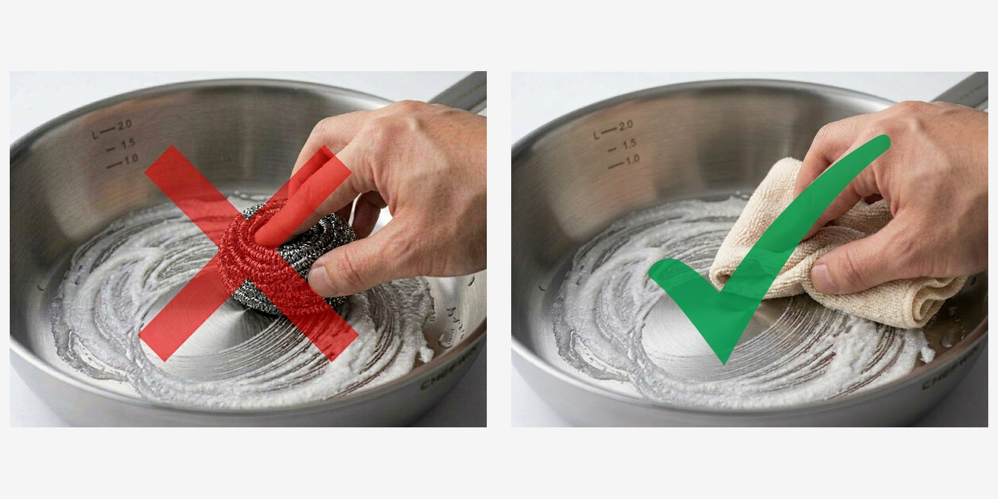 No steel wool — permanently scratches