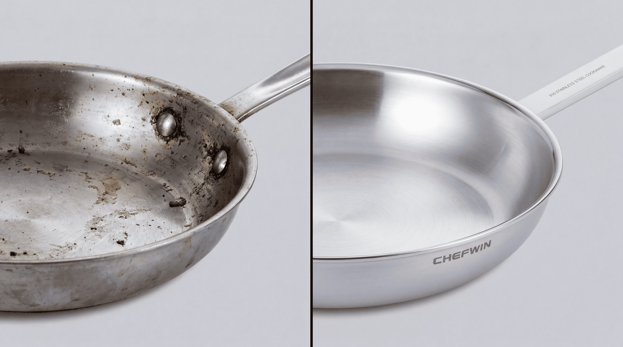 This is where the Rivet-less Revolution begins. Our 316 stainless steel pans feature a perfectly smooth interior.